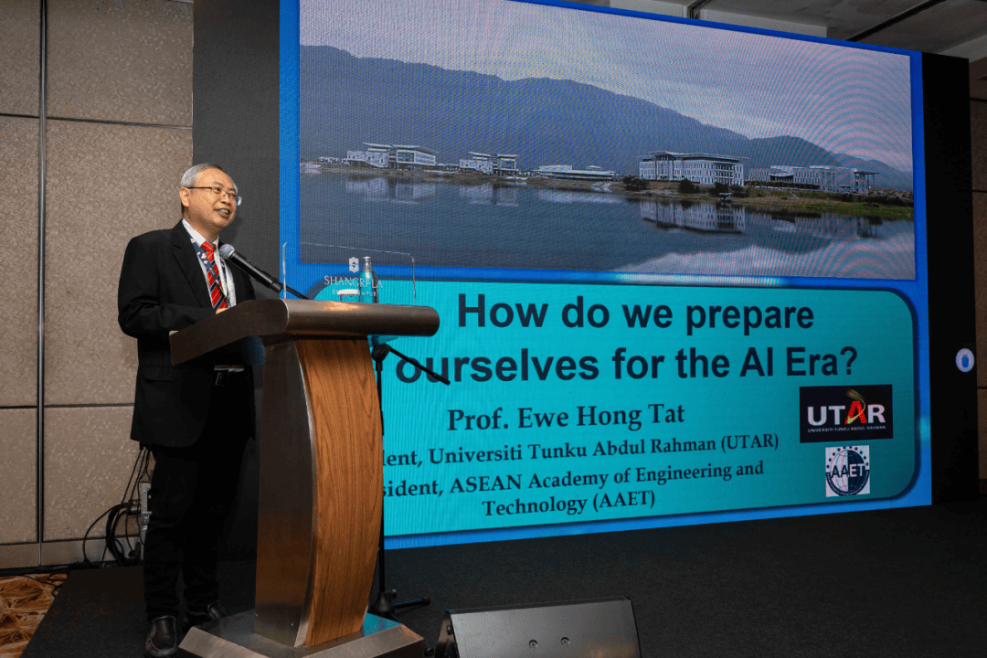 东盟工程取科技院院长、拉曼大学校长尤芳达传授(Prof. Ewe Hong Tat) 正在题为“我们若何为AI时代做好预备?”的演讲中。