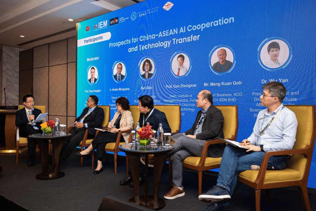 “中国—东盟AI合做取手艺转移前景”圆桌对话(左起:中国从动化学会副秘书长、西安交通大学人工智能学院孙宏滨传授,会议环绕“手艺立异共享、管理规范协同、能力扶植普惠”三大从线,取中国深化合做。